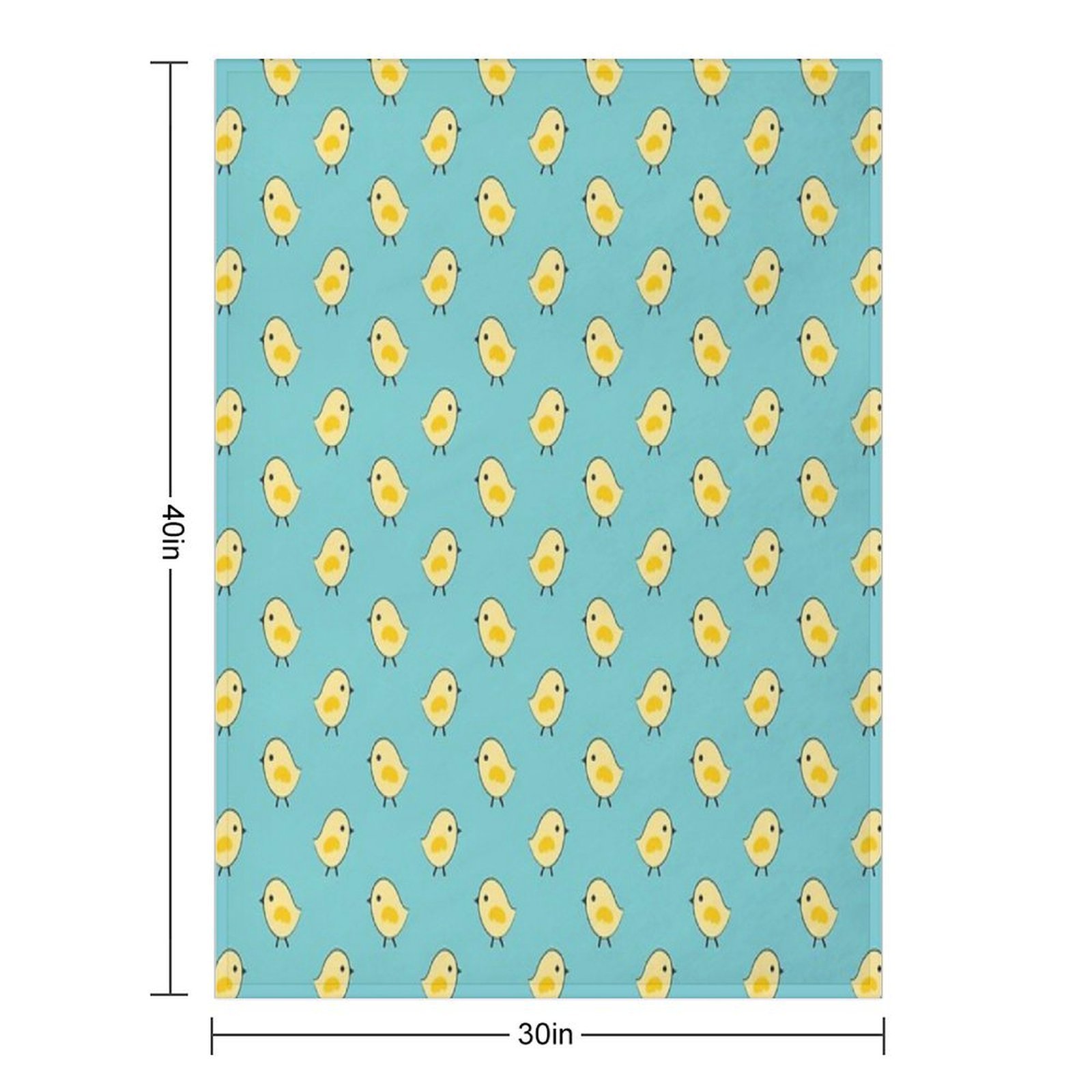 Busy Chicks Pattern - Yellow on Aqua Blue Blanket Size Chart: