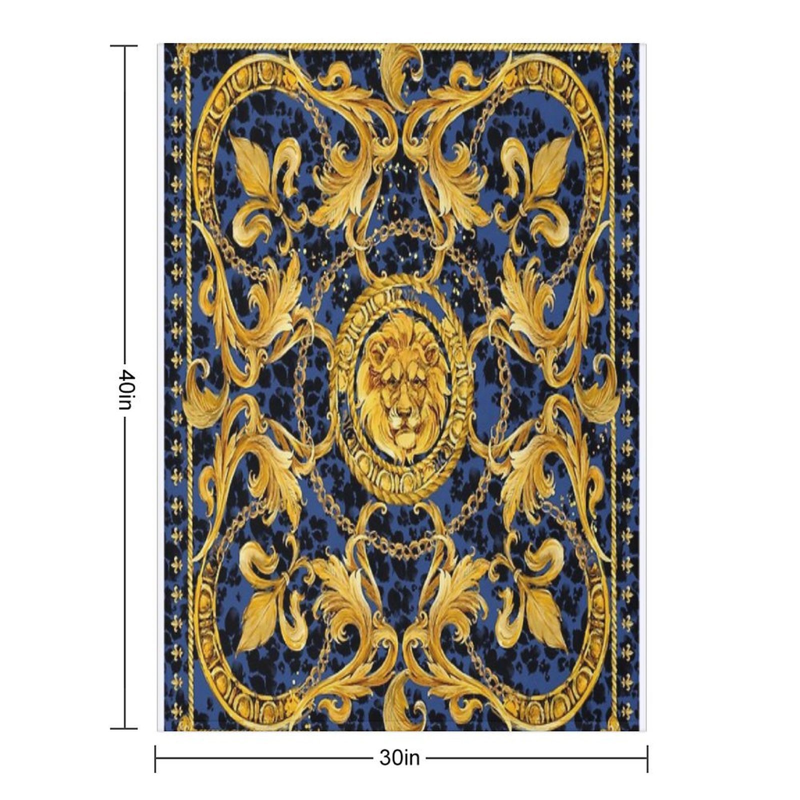 Golden Lion And Damask Ornament. Blanket Size Chart:
