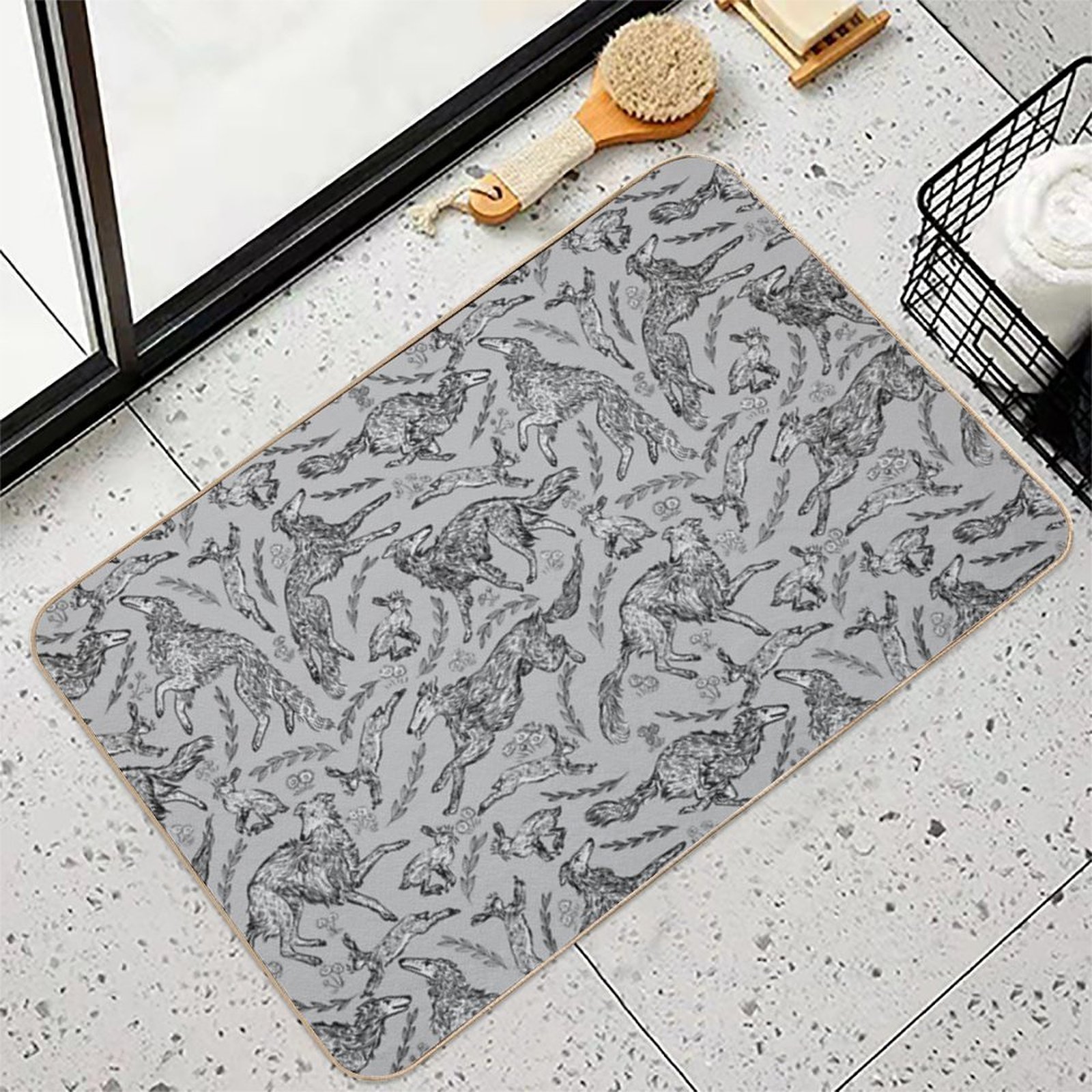 Transform your entryways with the Hounds And Hares - White Dogs on Silver Field Mat – crafted from durable diatomite-inspired material and plush 1600GSM flannel for unmatched dirt-trapping power. Designed for Hounds And Hares - White Dogs on Silver Field homes and high-traffic spaces, this eco-friendly mat combines slip-resistant safety with effortless maintenance. Whether placed in bathrooms, vacation cabins, or bustling Hounds And Hares - White Dogs on Silver Field office lobbies, it keeps floors pristine and dry.